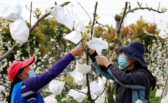忽如一夜春風來,千樹萬樹梨花開,泰興市新街鎮一派田園好風光,果農們正忙著疏花、套袋和授粉。江蘇洋宇生態農業有限公司,培育千畝梨園,栽植百畝桃樹,萬頭豬場肥水有了去處,優良品種的桃樹梨樹,又將結出富民的碩果。