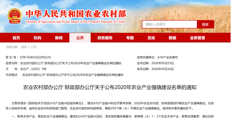 農業農村部、財政部5月26日發布2020年農業產業強鎮建設名單,江蘇12個鎮上榜,數量居全國前列。