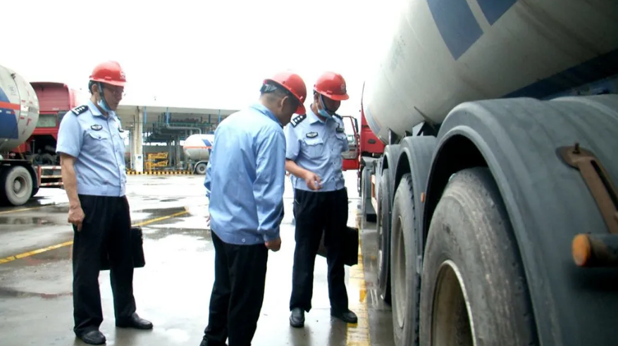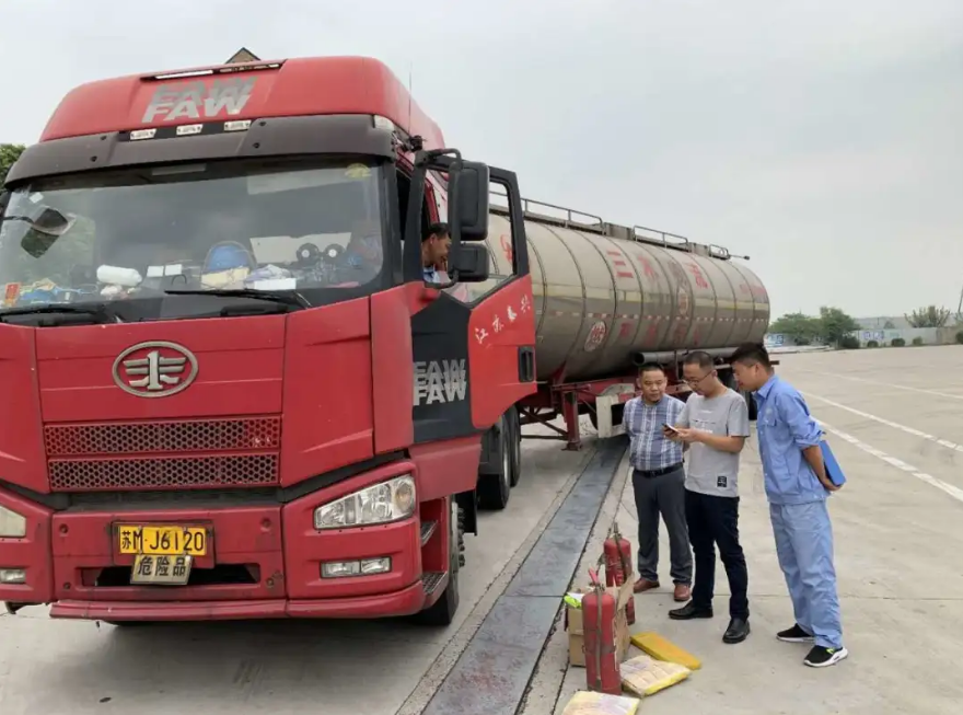 檢查組一行先后來到江蘇三木物流有限公司、太平洋化學危險貨物運輸有限公司兩家企業進行檢查。重點對公司駕駛員及押運員從業資格證及車輛資質、車輛技術檔案、衛星定位實時監控、駕駛員安全教育培訓、車輛安全防護用品配備等重點安全營運方面進行檢查。在兩家公司危化品運輸車輛停車場,執法人員對企業槽罐車輛安全情況進行檢查,全面排查危運車輛車況、消防設施及相關防護措施是否落實到位。