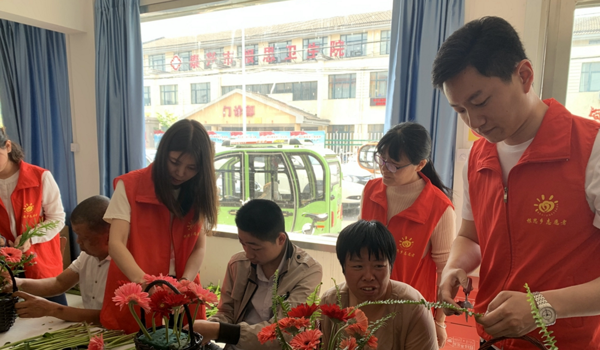 光線交匯,合作融合展新意。根思鄉(xiāng)“一米陽(yáng)光”志愿組織吸納專業(yè)能人,各職能科室和條線聯(lián)動(dòng)合作,致力開展精準(zhǔn)豐富、有效規(guī)范的服務(wù)項(xiàng)目。“普法+就業(yè)扶貧”。井坔村文明實(shí)踐志愿隊(duì)扶“智”與扶“志”結(jié)合,聯(lián)合鄉(xiāng)工業(yè)集聚區(qū)和泰興市農(nóng)副產(chǎn)品批發(fā)市場(chǎng),開設(shè)就業(yè)創(chuàng)業(yè)服務(wù)項(xiàng)目,3家個(gè)體工商戶成功創(chuàng)業(yè),20余人參加工作,為省文明村再添經(jīng)濟(jì)活力。“助殘+心理疏導(dǎo)”。5月20日,鄉(xiāng)殘疾人之家舉辦了主題活動(dòng),殘疾人朋友們共同制作愛心花籃,親手贈(zèng)送給關(guān)心愛護(hù)自己的志愿者和抗“疫”一線的鄉(xiāng)衛(wèi)生院醫(yī)護(hù)人員。