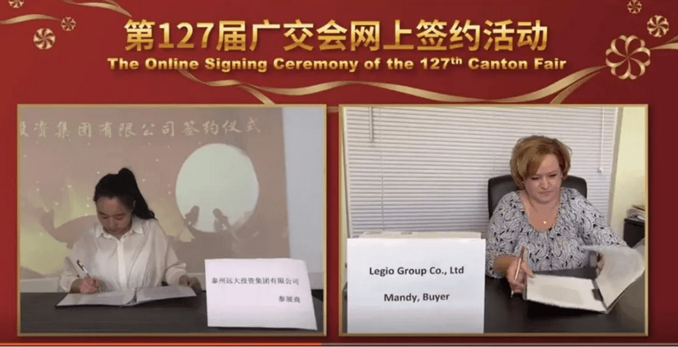 “Hello Mandy! I am delighted to meet you online.(你好曼迪!很高興在云端與你見面。)”6月18日10時(shí)30分,廣交會(huì)全球合作伙伴計(jì)劃“云簽約”活動(dòng)第二場如期舉行,泰州遠(yuǎn)大投資集團(tuán)代表與比利時(shí)LEIGO有限公司代表簽訂了價(jià)值500萬美元的庭院家具采購協(xié)議。