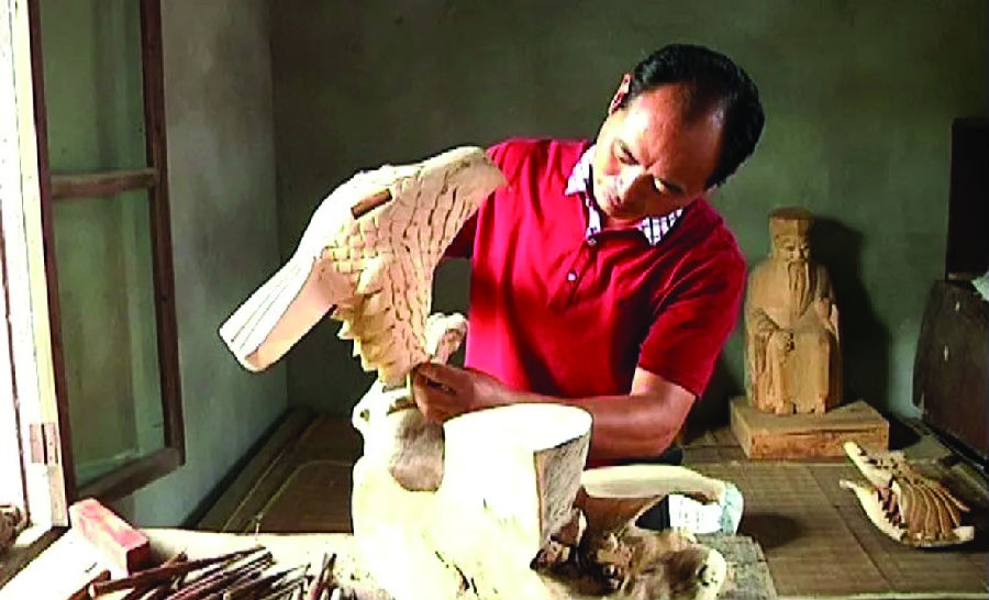 ●泰興磚雕● 磚雕,顧名思義指在青磚上雕出山水、花卉、人物等圖案,是古建筑雕刻中很重要的一種藝術形式。磚雕是中華民族優秀傳統文化遺產,集磚瓦材料生產、雕刻技藝傳承和建筑藝術表現之大成,既有華麗的外在藝術表現,又蘊含華夏文明博大精深的內涵。泰興市河失鎮劉官村的農民劉明宏癡迷磚雕幾十年,他不僅傳承傳統技藝,而且不斷開拓創新,對待雕琢質量精益求精,2014年,被評為“泰州市非物質文化遺產磚雕代表性傳承人”。