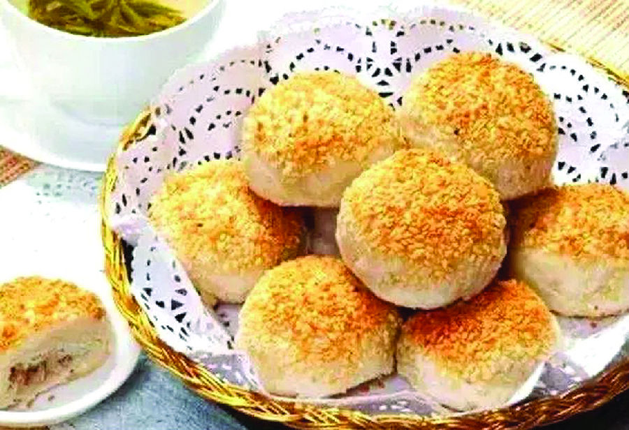 ●黃橋燒餅制作● 黃橋燒餅發源于泰興市黃橋鎮,最早出現在宋代,是自古以來深受人們喜愛的物美價廉的快餐食品。據《隨園食單》載稱,燒餅的制作是“用松子仁、胡桃仁敲碎,加冰糖屑、脂肪和面炙之”。 黃橋燒餅吸取了古代燒餅制作方法,并在花式品質上不斷改進。其制作技藝以師徒間口碑相傳為主,具有明顯的地方特色。