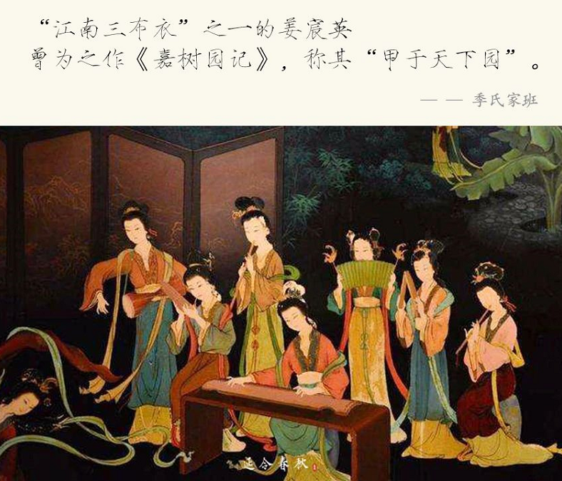崇禎年間,季寓庸卸官歸里,經營鹽業,成為江南首富,名震海內,遂拓地造園,起名嘉樹園。