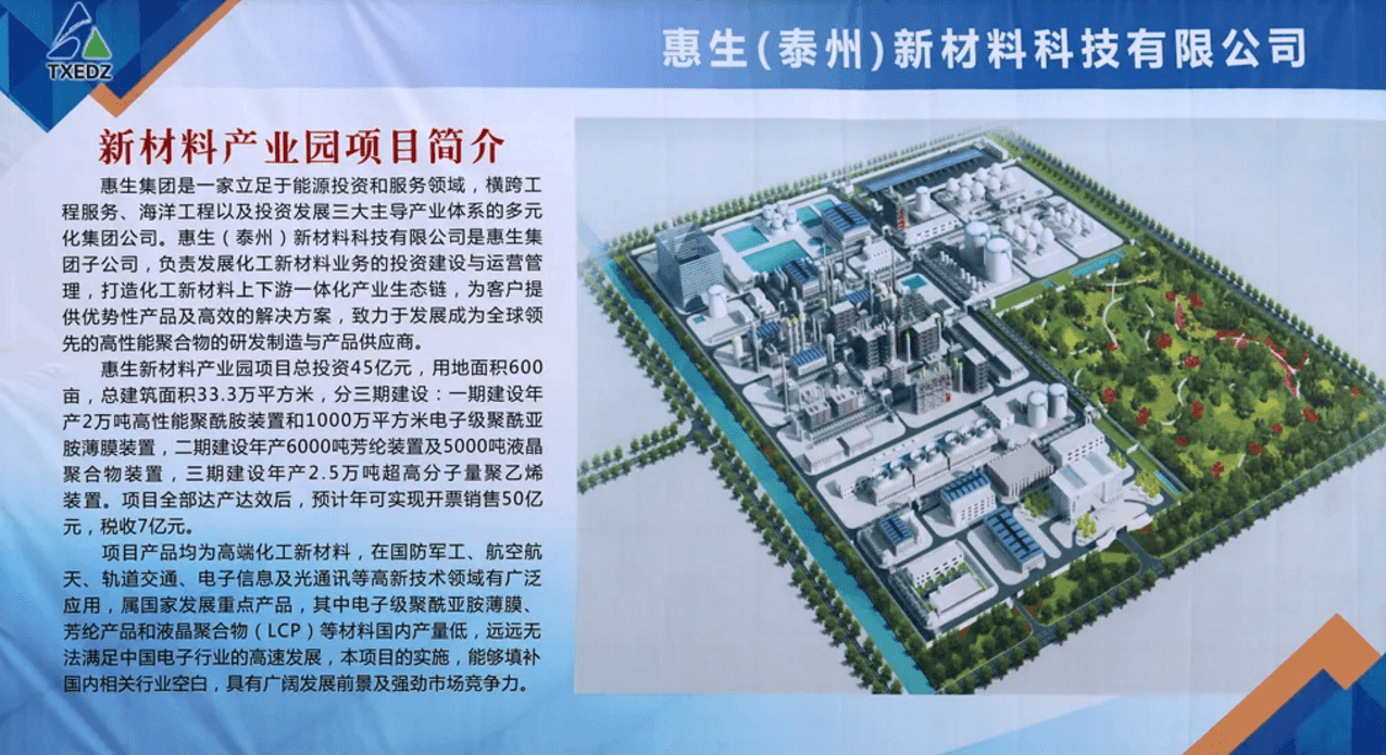 昨天上午,在泰興經濟開發區惠生(泰州)新材料產業園一期項目現場,塔吊林立、機器轟鳴,混凝土攪拌車和運輸車來回穿梭,數百名工人參與項目建設,31個主項正加緊施工。 惠生新材料產業園項目總投資45億元,其中,一期投資12.6億元,建設高性能聚酰胺和電子級聚酰亞胺薄膜項目。一期項目于去年11月開工,計劃今年10月逐步投產。項目的實施能夠填補國內相關行業空白,具有廣闊發展前景及強勁市場競爭力。“一期項目達產后,年可實現銷售收入17億元,稅收1.5億元。全部項目達產達效后,年可實現銷售收入50億元,稅收6億元。”惠生(泰州)新材料產業園綜合管理部經理沈鳳娟介紹。