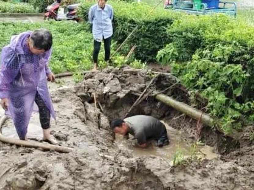 近日的大暴雨等惡劣天氣使水稻田正常排水受到影響。在泰興市曲霞鎮鎮西村陳公堂3組,隨著雨越下越大,稻田里的水位以肉眼可見的速度上漲,村后備干部趙磊二話不說,鞋子一脫就跳入了出水坑管道,抓住水泵管道細細排查堵塞原因。泡在水里1個小時之后,他終于把管道內的堵塞垃圾、石塊全部取出,農田排水恢復正常,及時保護了地里的莊稼。