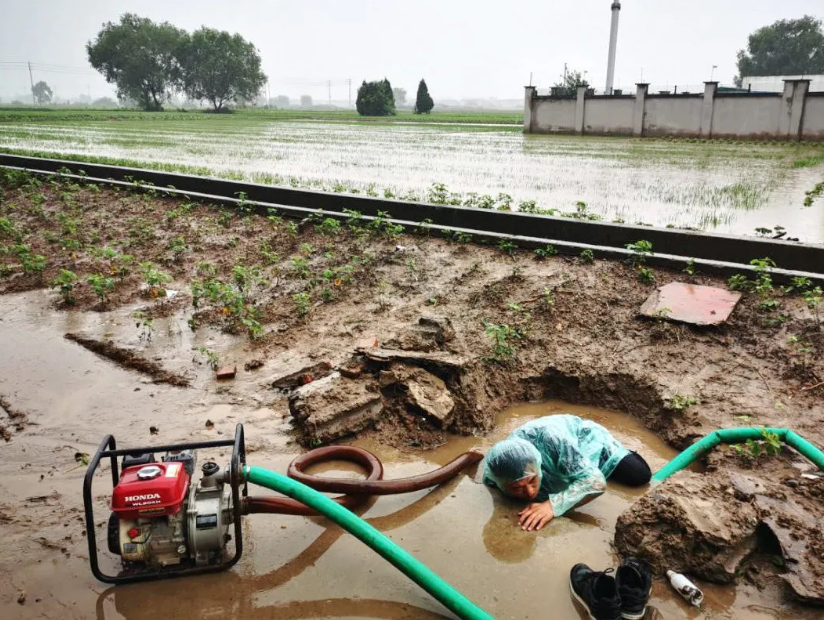 以身試“險”,黨員干部筑起堅固堡壘 近日的大暴雨等惡劣天氣使水稻田正常排水受到影響。在曲霞鎮(zhèn)鎮(zhèn)西村陳公堂3組,隨著雨越下越大,稻田里的水位以肉眼可見的速度上漲,村后備干部趙磊二話不說,鞋子一脫就跳入了出水坑管道,抓住水泵管道細(xì)細(xì)排查堵塞原因。泡在水里1個小時之后,他終于把管道內(nèi)的堵塞垃圾、石塊全部取出,農(nóng)田排水恢復(fù)正常,及時保護(hù)了地里的莊稼。 趙磊是村里的入黨積極分子,他說:“汛情是對我們的一次考驗,群眾有需要,我就沖在前!”