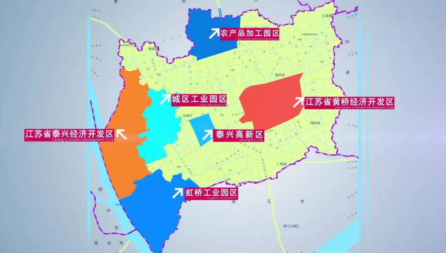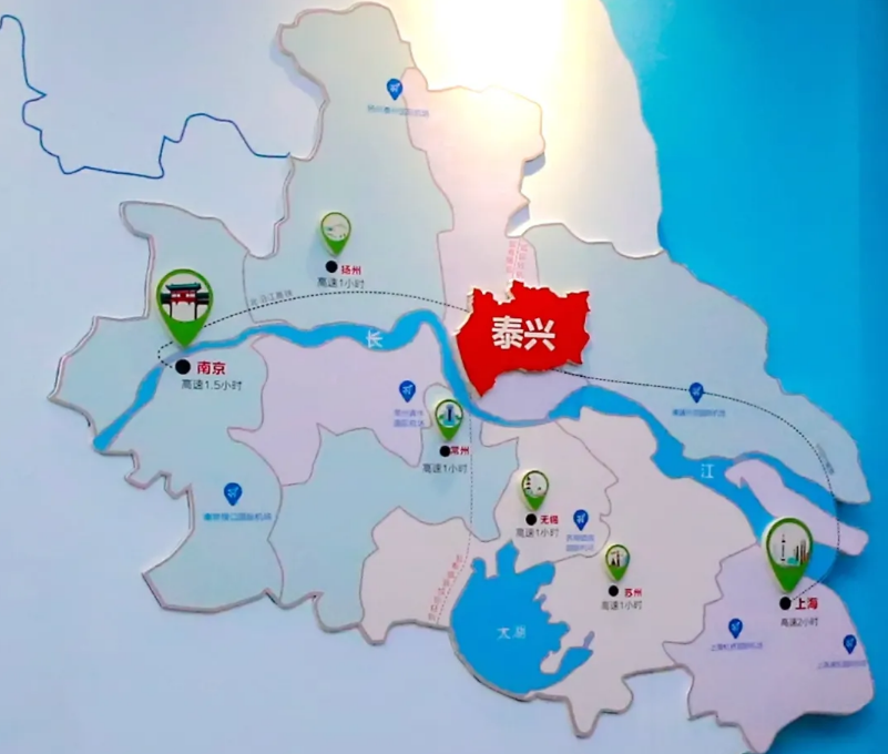 泰興因江而生、依江而興,擁有1172平方公里地域,下轄16個鄉(xiāng)鎮(zhèn)(街道)、3個省級開發(fā)區(qū)、3個市級園區(qū)。萬里長江向東奔流,流入泰興昂首向南,然后拐彎向東、直奔大海,24.2公里的長江岸線將泰興鑲嵌其中,呈現(xiàn)出一個“聚寶盆”似的“弧形洼地”。