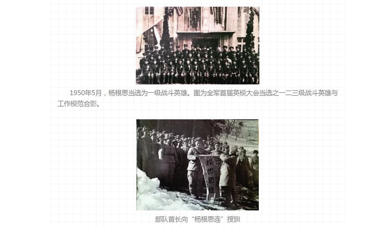 楊根思 70年前,在抗美援朝的戰(zhàn)場上,無數(shù)革命先烈英勇殺敵,付出了自己年輕的生命。 他們當(dāng)中有這樣一個人永遠(yuǎn)為我們銘記,他出身貧苦農(nóng)民家庭,當(dāng)過童工,參加新四軍屢立戰(zhàn)功;參加中國人民志愿軍赴朝作戰(zhàn),作戰(zhàn)英勇,視死如歸,抱起炸藥包與敵人同歸于盡。 他被志愿軍領(lǐng)導(dǎo)機(jī)關(guān)追記特等功,授予“特級英雄”稱號; 他就是新中國第一位特級戰(zhàn)斗英雄——楊根思。