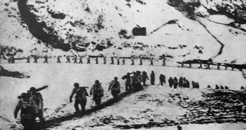 志愿軍第20軍第58師冒著嚴寒向戰區挺進
