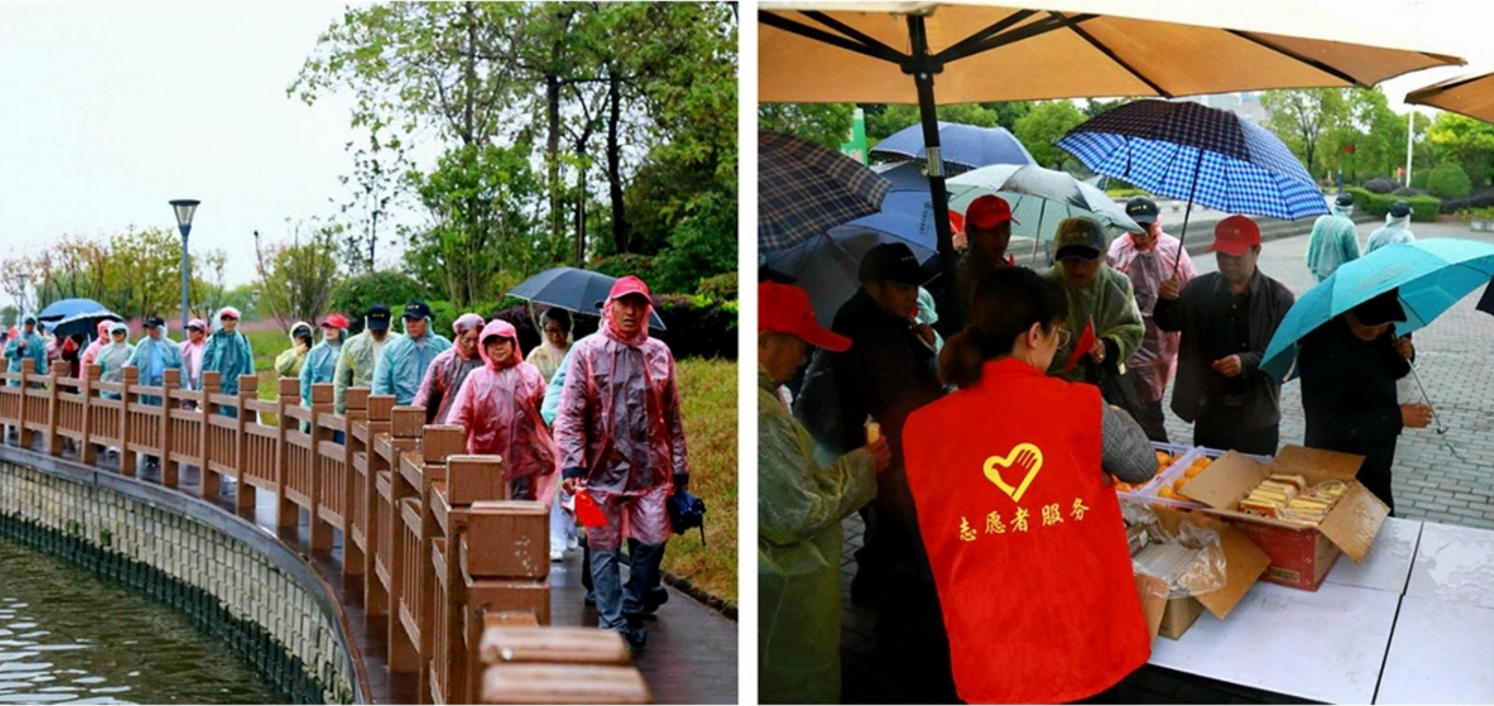 “老張,你看這鳳棲小鎮(zhèn)建設(shè)成這樣了,多美啊,生態(tài)也好,早晨的空氣真新鮮!”參加全市老年人健步行活動的老年人紛紛點贊。200多名老人環(huán)鳳棲湖健步行,他們步速穩(wěn)健,情緒高漲,絲毫沒被下雨所困擾,邊走邊欣賞雨中的鳳棲湖畔,別有一番情趣和意味。泰興高新區(qū)志愿者們?yōu)榻〔叫欣先藴蕚淞藷崴托×闶常龑Т蠹倚蕾p美麗的風景,感受高新區(qū)特色發(fā)展變化成就。