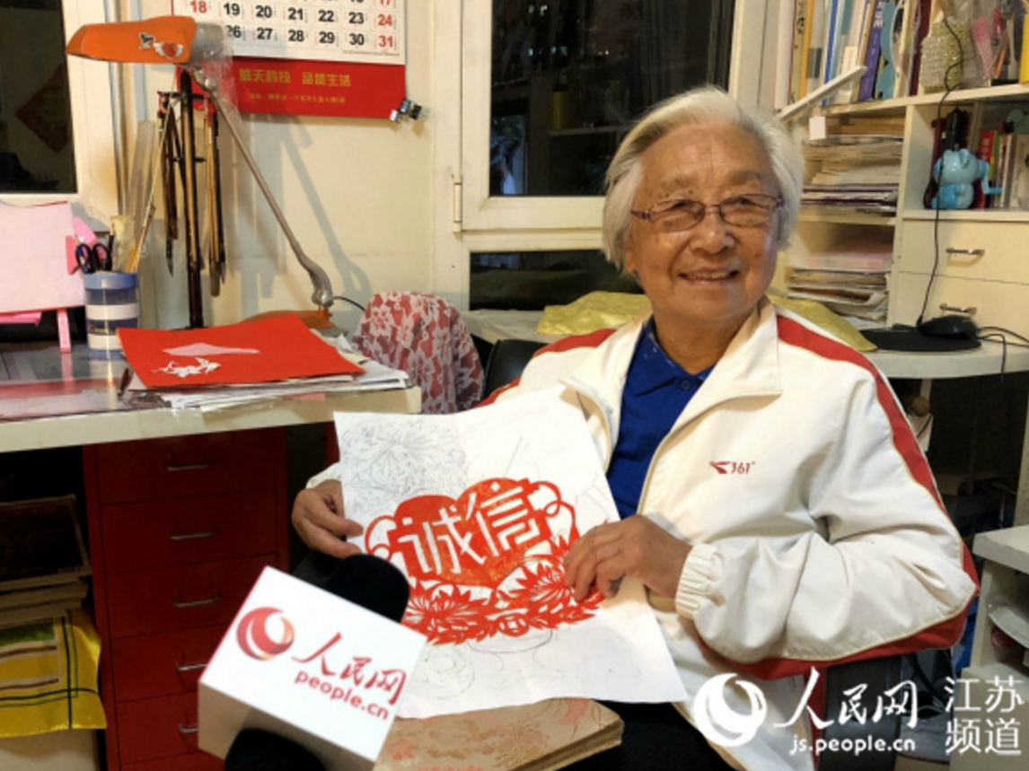 吳融芳老人創作的剪紙作品《誠信》 記者王新年攝 南京市建鄴區中勝社區的吳融芳老人今年88歲,29日晚上早早便守在了電視機前。“五中全會公報中多次提到脫貧工作,我非常感動。”吳融芳告訴記者,從前年開始,她連續三年前往云南、貴州等地,為的就是實地看看我國的脫貧成果,“小時候都說那里‘天無三日晴,地無三尺平,人無三分銀’,發展落后。現在再去看,我非常激動,公路修到了家門口,高鐵在大山里穿行……”除了脫貧成績單,“十三五”期間,國民素質和社會文明程度達到新高度,吳融芳為此專門創作了剪紙作品,“大家誠信度越來越高,我們的社會才會發展得越來越好!” 展望“十四五” 擼起袖子加油干
