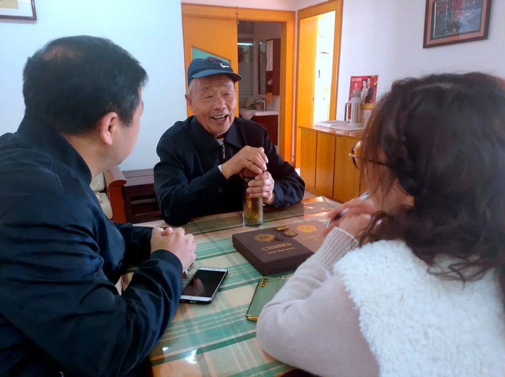 高保俊 ,91歲,原七圩四仙丁馬村人,1948年8月參軍,經歷渡江戰役、抗美援朝戰役。雖是鮐背之年,卻精神矍鑠,講話條理清晰、笑聲爽朗,樂觀的精神瞬間感染每個在場的人。