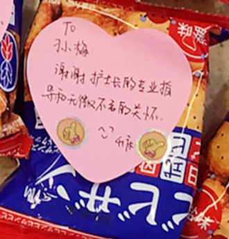 2020年10月26日上午,為感謝醫護人員的救命之恩,患者殷某女兒別出心裁的給內分泌科每位醫護人員送來貼有不同感謝語的餅干。
