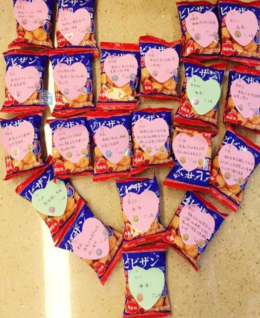 為感謝醫護工作者的救命之恩,有患者送錦旗的,有患者送鮮花的,也有患者送感謝信的……但在泰興市人民醫院內分泌科,竟然有患者家屬把祝福語寫在每個餅干袋上來表達感謝之情,這還是第一次聽說。 21個小餅干外包裝袋上,貼有21個心形的彩色標簽,寫著21句溫暖的感謝話語。