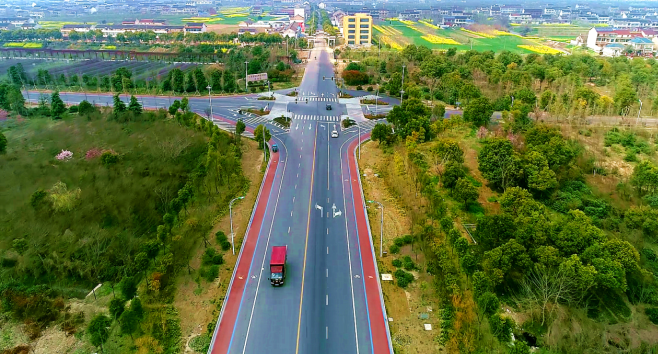 近年來,泰興市宣堡鎮(zhèn)科學(xué)布局交通路網(wǎng),加快推進高品質(zhì)“四好農(nóng)村路”建設(shè),做好“公路+”的文章。截至目前,已完成 “四好農(nóng)村路”改造78.9公里,其中,鋪就通村“彩虹路”’22公里,有效提升了通行能力和服務(wù)水平,農(nóng)村公路與特色產(chǎn)業(yè)、文化旅游、美麗鄉(xiāng)村建設(shè)、精準(zhǔn)扶貧的融合發(fā)展更加緊密,一條條風(fēng)景如畫的鄉(xiāng)村公路不僅不僅成了“網(wǎng)紅路”,串起了美麗鄉(xiāng)愁,也讓鄉(xiāng)村振興的夢想照進現(xiàn)實。 以路興產(chǎn)業(yè),打通特色產(chǎn)業(yè)發(fā)展“快車道” 驅(qū)車行駛在通往江蘇綠冶苗木科技有限公司宣堡苗場的鄉(xiāng)村道路上,一路平坦暢通,兩側(cè)的苗木花卉基地層林盡染,生機盎然。“我們公司這次要銷往徐州大規(guī)格香樟60株、實生銀杏樹150株、紫薇 200株,有了通暢快捷的道路,現(xiàn)在方便多了,也減少了運輸和人工成本。”苗場基地的負(fù)責(zé)人秦成浩欣喜地說。 宣堡苗場是宣堡鎮(zhèn)招引的國內(nèi)知名綜合性園林企業(yè)——蘇州園林股份發(fā)展有限公司在鎮(zhèn)上投建的一家苗木企業(yè),共租賃宣堡村、崇頭莊村1200多畝土地發(fā)展苗木基地。過去,受制于鄉(xiāng)村道路狹窄,交通不便,出苗時往往要裝卸、轉(zhuǎn)運多次,花了不少“冤枉錢”。2018年宣堡鎮(zhèn)上爭實施縣道X302線宣蔣線宣堡段改造升級,路道改為雙向四車道,攤鋪彩色瀝青路面,安裝路燈226盞,完善了排水設(shè)施。“這條按城市次干路技術(shù)標(biāo)準(zhǔn)設(shè)計的鄉(xiāng)村公路,是泰興首條彩色瀝青路道,也成了打通宣堡苗木產(chǎn)業(yè)發(fā)展的‘快車道’。”宣堡鎮(zhèn)分管農(nóng)村公路建設(shè)工作的副鎮(zhèn)長褚鵬介紹說。