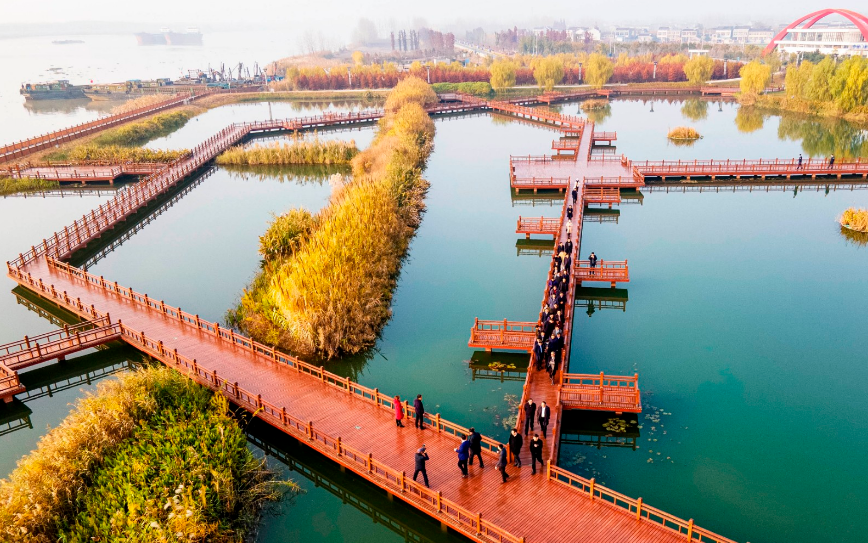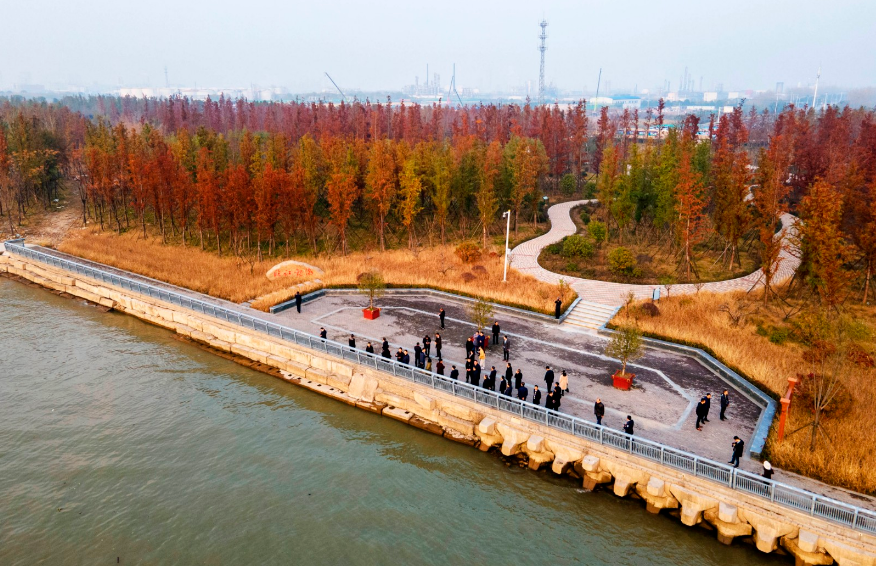 12月12日下午,與會代表們參觀江蘇泰興市長江邊的“親水棧道”。