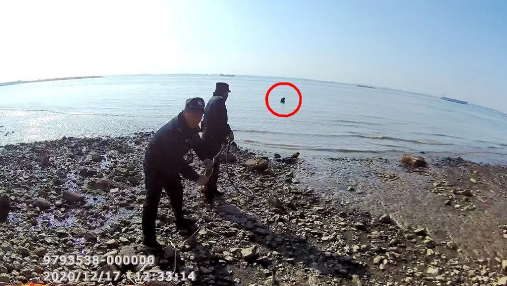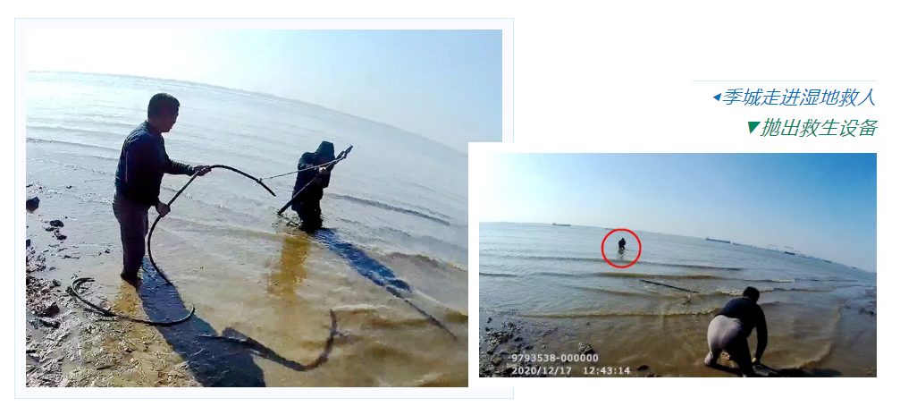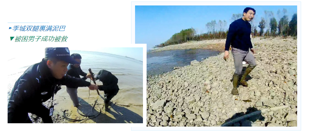 經過數十次的嘗試,被困男子成功抓住繩子上的木棍,被救上了江岸。此時季城的雙腿已被泥巴裹滿,被同事扶上岸邊的他全身還在哆嗦。