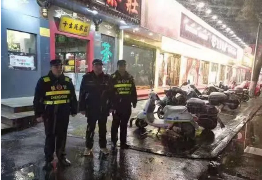 (鼓樓街,城管隊員維持市容秩序)