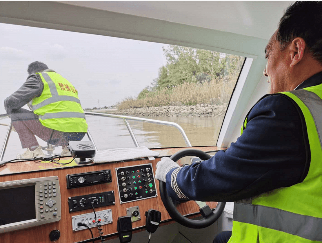 (中共泰興市委網信辦供圖) 每次,路過生態廊道江堤外的九曲親水棧橋,曾經是泰興市虹橋鎮養魚大戶的朱青海都會在橋上停留一會兒欣賞美麗的江景,眼里透露著說不出的滿足和欣喜,不禁為當初自己響應政府“退漁還濕”的選擇喊“值” ! 美麗的長江,不僅激發了岸上養魚戶的保護欲,還激發了退捕漁民的守護責任。 “快來看,江上有情況!”10 月 29 日中午 11 點 20 分,泰興市長江禁捕綜合執法基地內,隨著技防視頻監控員一聲喊,周國華等 5 名護魚員迅速整理裝備,蓄勢待發。