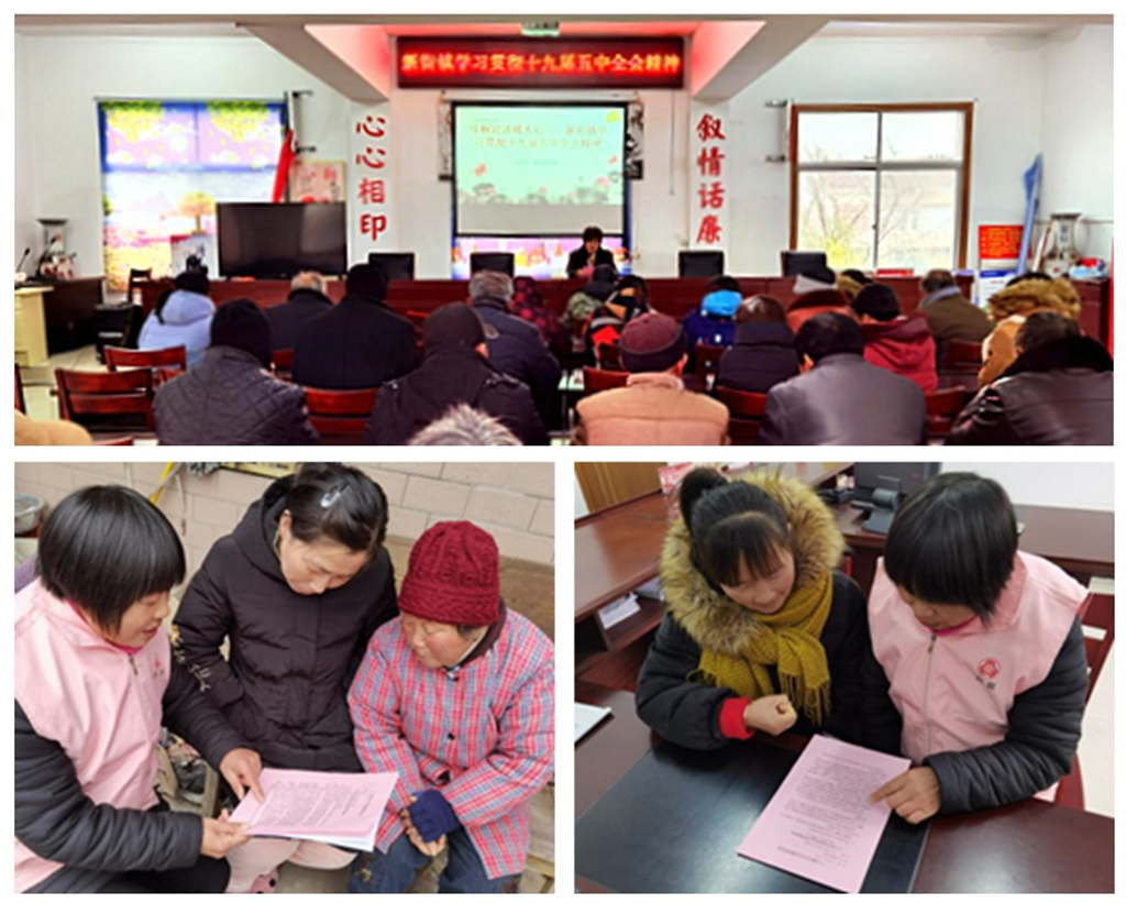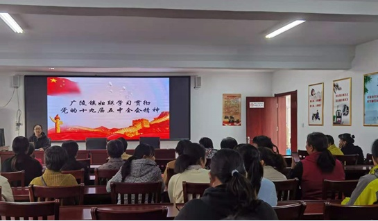 干部帶頭講 使命責任扛在肩 在廣陵鎮,鎮婦聯副主席曹丹帶領各村婦聯主席學習《中國共產黨第十九屆中央委員會第五次全體會議公報》,解讀全會提出的基本實現社會主義現代化9個方面遠景目標、“十四五”時期經濟社會發展6大“新”目標和新時期發展12大主張等內容。各村婦聯主席深刻認識了全會的重大意義,深入學習領會全會精神,特別是習近平總書記重要講話精神的核心要義、豐富內涵、實踐要求。大家表示,要進一步提高政治站位,把十九屆五中全會精神貫穿于婦聯工作的全過程各方面,扎實推進各項工作。
