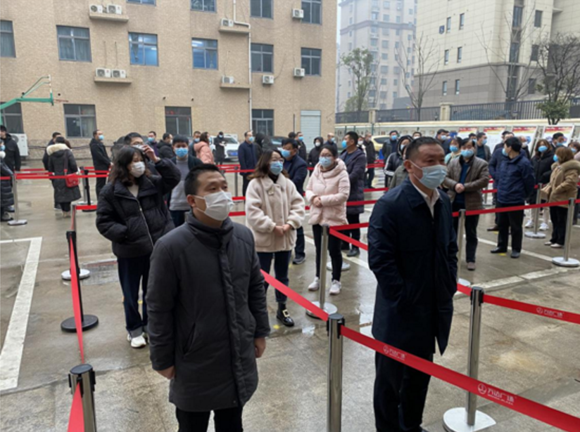 1月27日下午,泰興市濟川街道躍進社區門口,幾十號人排起了長隊。