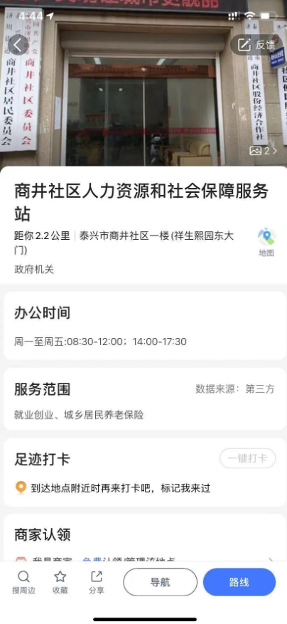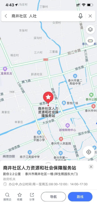 “人社電子地圖”功能借助高德電子地圖開放接口,實(shí)現(xiàn)泰興市級(jí)、鎮(zhèn)街、社區(qū)(村)人社三級(jí)服務(wù)網(wǎng)絡(luò)公共服務(wù)機(jī)構(gòu)電子地圖定位,具有直觀、可視的特點(diǎn)。高德地圖用戶只需搜索所在的村或社區(qū)加關(guān)鍵詞“人社”,就可以獲取最近的人社服務(wù)站地點(diǎn)。地圖不僅能提供就近辦事地點(diǎn)查詢及路線導(dǎo)航的服務(wù),還提供服務(wù)機(jī)構(gòu)詳細(xì)地址、辦事時(shí)間及服務(wù)事項(xiàng)等信息,為辦事群眾及企業(yè)提供更為清晰明確的指引。