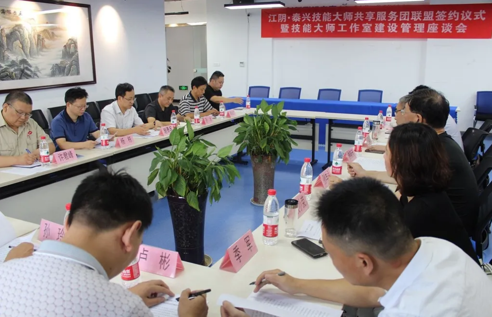 跨區組建“聯盟” 為擴大技能大師共享服務團的“朋友圈”和影響力,2020年7月,與江陰市人社局跨江協作、攜手創建“泰興·江陰技能大師共享服務團聯盟”,共同打造高技能人才特色服務品牌。領導小組由雙方分管領導任組長,職能科室負責人為組員,明確專職聯絡員。按照工作職責,泰興、江陰共同開展技術攻關、培訓指導、鑒定考評等服務,搭建學習交流的平臺;選拔一批具有代表性和影響力的高技能(鄉土)人才,開展“技能大師(鄉土人才)工作室”評選和規范化建設,打造4個示范點;建立例會制度,加強與其他部門的聯系,舉行有特色、有影響的重大活動。