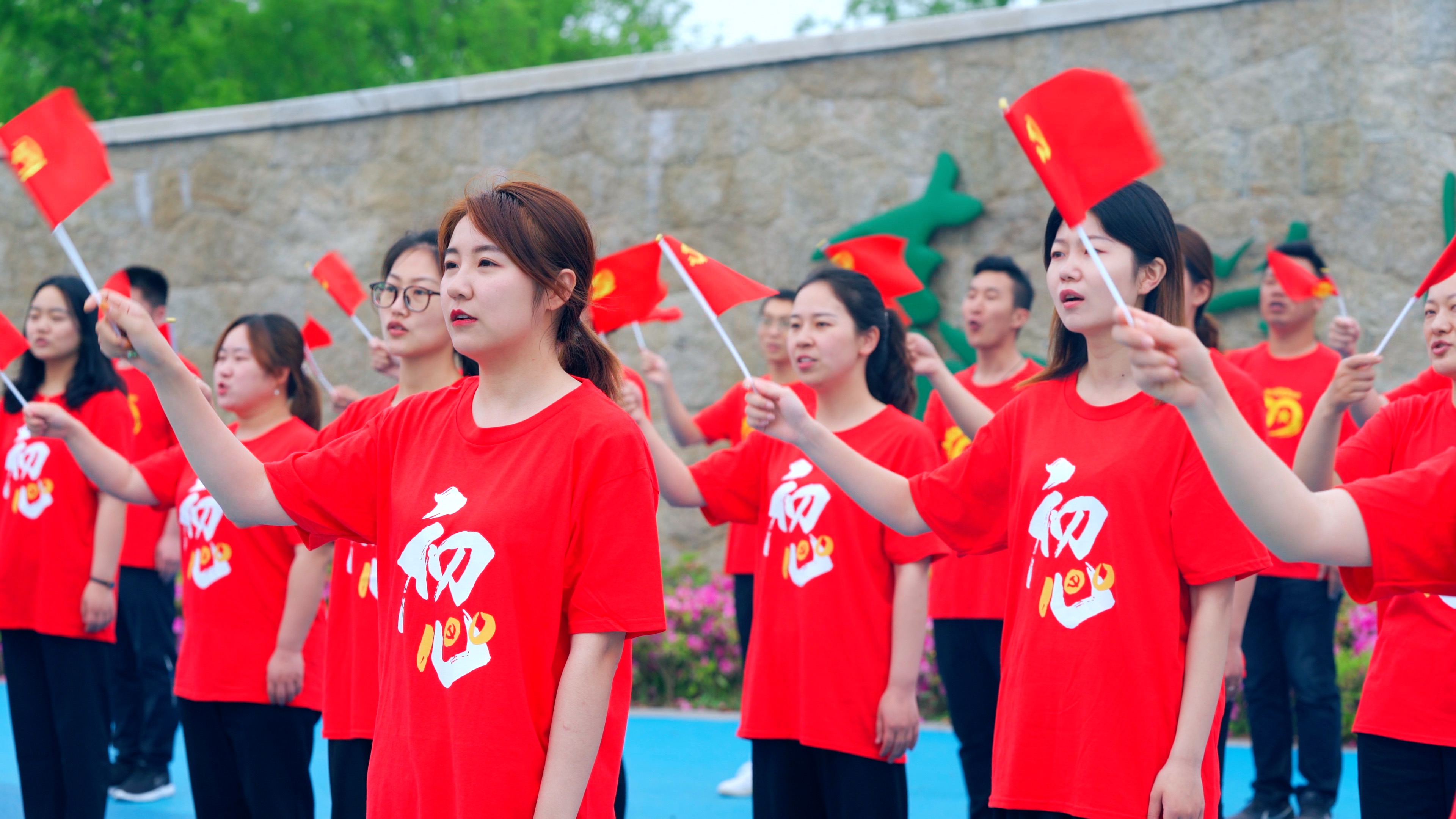 “沒有共產黨就沒有新中國,沒有共產黨就沒有新中國,共產黨辛勞為民族,共產黨他一心救中國……”在“5·20表白日”這個美好的日子里,《沒有共產黨就沒有新中國》《歌唱祖國》《社會主義好》等歌曲在江蘇泰興全城唱響。 在全市18個鄉鎮(街道)、開發園區的314家新時代文明實踐所(站),2萬余名黨員干部群眾手持黨旗、深情演繹。宣堡鎮新時代文明實踐所的工作人員戴琳說:“在520這個特殊的日子里唱紅歌大家都覺得特別有意義,我們想用歌聲告訴祖國:我最愛您!”