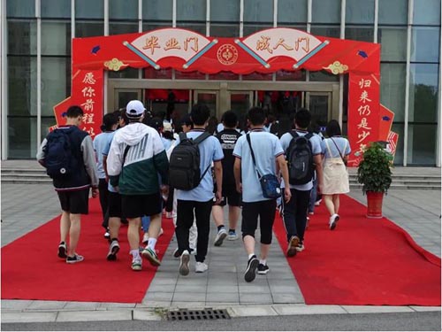 畢業生們依次經成人門、畢業門,進入會場