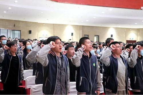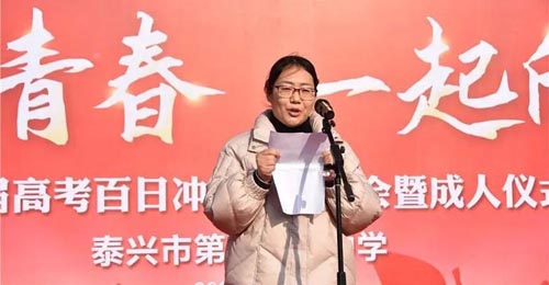 十八歲成人宣誓 3.泰興市第二高級中學 2月27日下午,泰興市第二高級中學在田徑場舉行18歲成人儀式。