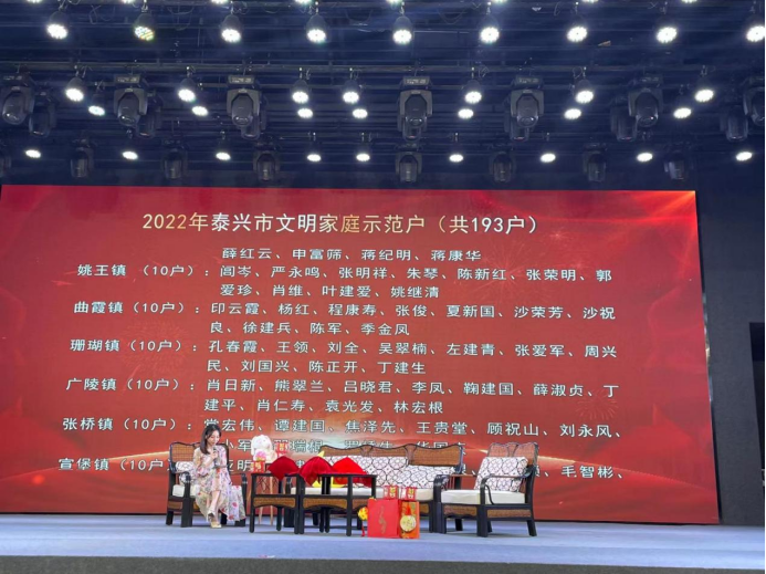 傳承好家風(fēng),一起話團圓。活動現(xiàn)場對193戶2022年度泰興市文明示范家庭進行表彰。文明家庭代表們孝老愛親、助人為樂、熱心公益、家風(fēng)傳遞的感人故事,通過節(jié)目演出、事跡短片播放、現(xiàn)場采訪、故事分享等環(huán)節(jié)生動展現(xiàn)。一句句真摯樸實的話語,一幅幅溫馨感人的畫面,讓大家在中秋佳節(jié)共同感受家的和諧與溫馨,共同感受文明的魅力和風(fēng)采。 泰興市將文明家庭評選作為創(chuàng)建全國文明城市的“細胞工程”,通過層層推薦、嚴(yán)格把關(guān),積極推薦、培育和選樹文明家庭典型,結(jié)合“喜迎二十大”“學(xué)習(xí)回信精神”等主題活動,大力宣傳文明家庭的感人事跡和崇高精神,讓文明之風(fēng)地吹拂到全社會各個角落。