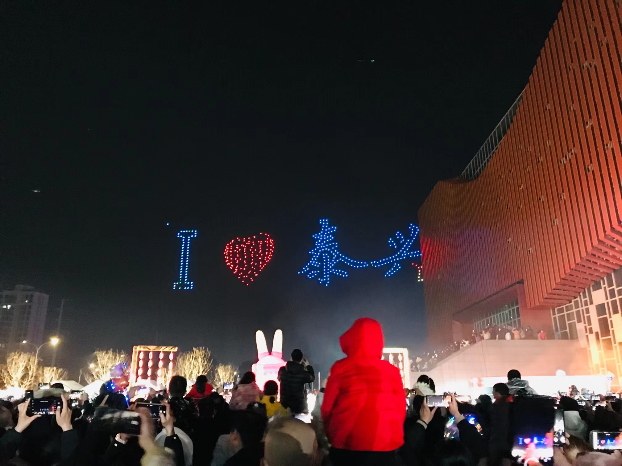 蒼穹做“幕” 科技為“筆” 以天為幕,以城為景,閃耀夜空。500架無人機集群表演為市民帶來震撼的視覺盛宴,點亮了泰興的夜空。此次無人機編隊表演是泰興首次大規模無人機演出,19:30整,無人機呼嘯而起,一場以光影焰火為筆、城市夜空為紙,縱橫交錯,輝映天空,卷變出“青春泰興 就這young”“元宵快樂 大展宏兔”等文字圖案,極具煙火氣息的視覺盛宴綻放全城,展示了泰興大地氣象萬千、蓬勃向上的新氣象,營造出熱鬧喜慶、辭舊迎新的濃厚氛圍,繪就了“魅力高新 幸福姚王”新時代美麗畫卷。