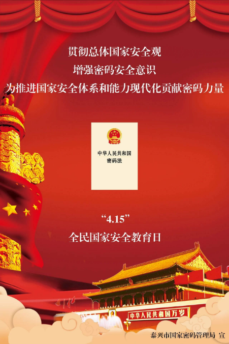 2023年 是全面貫徹落實(shí)黨的二十大精神的 開(kāi)局之年 4月15日將迎來(lái) 第八個(gè)全民國(guó)家安全教育日 今年的主題是: “貫徹總體國(guó)家安全觀, 增強(qiáng)密碼安全意識(shí), 為推進(jìn)國(guó)家安全體系和能力現(xiàn)代化 貢獻(xiàn)密碼力量。”