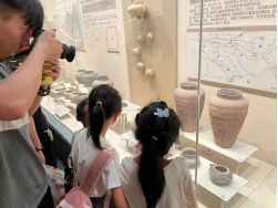 在前往博物館的路上,孩子們臉上洋溢著喜悅與好奇,對此次旅行充滿了期待。進入博物館后,孩子們馬上被豐富多樣的文物、生動形象的場景、聲情并茂的講解所吸引,迫不及待地投入到了這次歷史文化之旅。“運河上的舟楫”展廳讓孩子們在變幻的空間內,宛若真正坐在了運河之上的大船上,恍然間仿佛置身于畫卷之中;步行在“大運河街肆印象”展廳的仿古街道上,孩子們仿佛穿越時空,感受著生活在運河沿岸古人的日常起居、風俗文化;“運河濕地尋趣”展廳里復原的濕地場景,展示出靜水動物和植物群落等濕地生態,孩子們在這里與魚兒、鳥兒對話,充滿童趣。