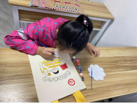 “籽籽同心”少數民族志愿者老師帶領孩子領取繪畫材料及帆布包,并以“民族團結一家親”“祖國在我心中”為主題,自由在帆布包上作畫。繪制圖案、涂抹上色,將純白底色變成畫板,孩子們精心地將帆布包變成“獨一無二”的非遺手工藝品。