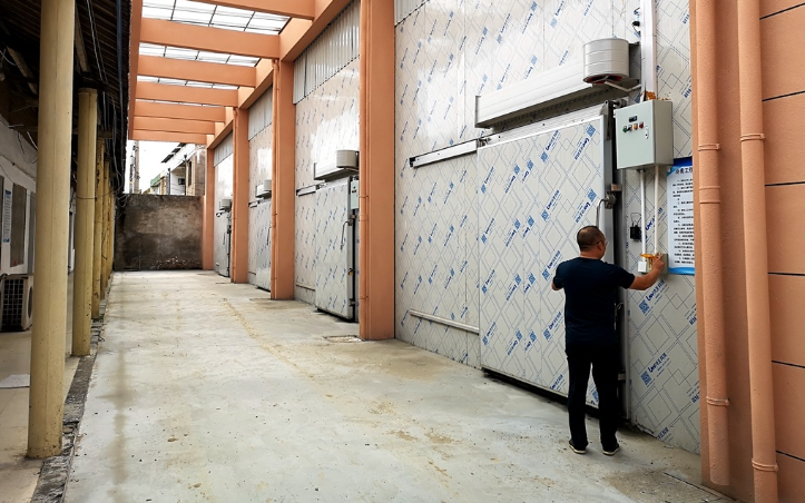 走進泰興市新街鎮農產品田頭冷藏保鮮庫,只見像集裝箱一樣的銀灰色鋼構冷庫高高聳立。打開庫門,一陣陣白汽撲面而來,庫內一包包剛采摘的新鮮蔬菜,經過分揀、包裝,送進冷庫預冷保鮮后冷藏起來。