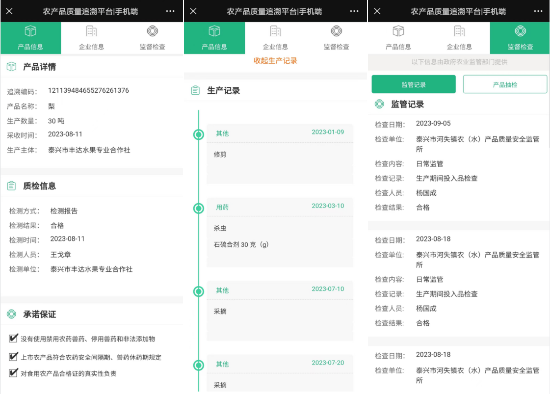 民以食為天,保障“舌尖上的安全”關乎人民群眾切身利益。近年來,隨著數字農業的發展,江蘇省泰興市不少綠色水果蔬菜貼上了“身份證”——農產品質量追溯憑證。小小一張碼,可以對農產品的生產、收購、儲存、加工、運輸、銷售各個環節實施追溯管理,實現農產品質量控制,保障消費者購買到放心農產品。