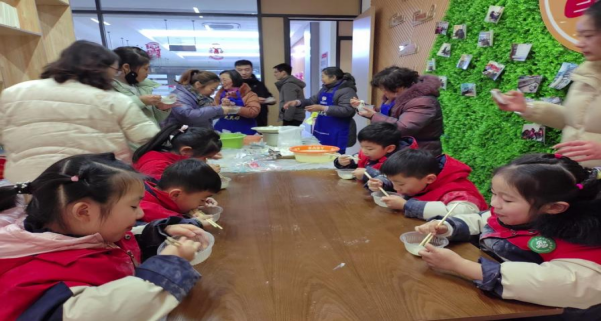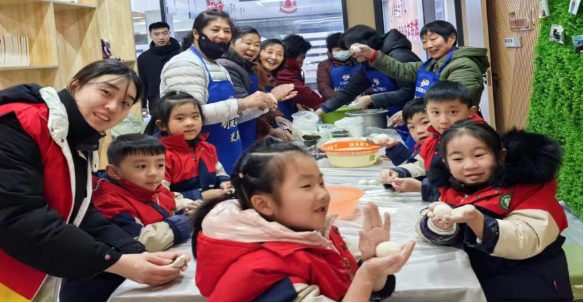 活動開始就分外的熱鬧。社區居民、社區志愿者、社工齊聚一堂,包湯圓、煮湯圓、話湯圓。大家齊心協力,分工有序,和面、拌餡、一搓、一捏、一按、一團,不一會兒一坨坨白白的糯米面在大家的巧手中團成一個球,包上芝麻餡,做成一個個誘人的湯圓。小朋友也有樣學樣的包了起來,奇形怪狀的湯圓讓人忍俊不禁。下鍋,沸水一煮,又香又甜的湯圓便新鮮出爐。雖然外面天氣寒冷,但大家吃著熱氣騰騰的湯圓,暖在心里,甜在臉上。