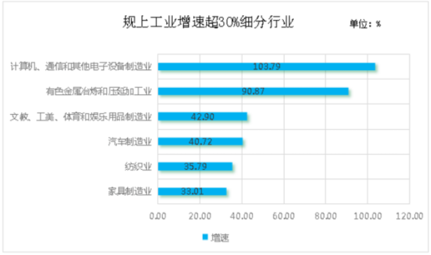規(guī)上工業(yè)企業(yè)用電量合計17.3億千瓦時,同比增長7.59%,較上年同期上升9.25個百分點,拉動全社會用電量增長5.25個百分點。規(guī)上工業(yè)29個細分行業(yè)中,正增長有22個,增幅超30%有6個。 |