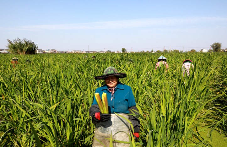 “今年,茭白種植面積350畝,一年分兩季種植采摘。氣溫較為適宜,預計可達4000斤/畝。目前,價格區間在2至3元/斤。茭白主要銷往南京大型農貿市場。”河失鎮鼎印蔬菜合作社理事長儲宜金說。該合作社共有112家農戶,合作社以保底價收購,從選種、種植到收割,都有明確的操作規范,不符合標準的茭白絕不出售。如今,350畝的茭白,讓這些村民都有了穩定的收入。