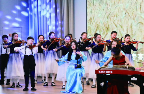 “6·21國際樂器演奏日”活動(dòng),是全世界音樂愛好者的一個(gè)重要節(jié)日。6月21日上午,這項(xiàng)活動(dòng)再次在泰興市黃橋鎮(zhèn)拉開帷幕,吸引眾多市民相聚于此,在音樂聲中度過美好的一天。 在黃橋鎮(zhèn)琴韻小鎮(zhèn)城市客廳,該鎮(zhèn)幼兒教育集團(tuán)中心分園師生組成的表演方陣?yán)铮√崆佟⒋筇崆佟⒇愃骨俚绕鳂俘R鳴,時(shí)而鏗鏘激越,時(shí)而宛轉(zhuǎn)悠揚(yáng),小鎮(zhèn)客廳里一片歡樂。“通過和小朋友一起學(xué)習(xí)小提琴,發(fā)現(xiàn)音樂不僅能讓我感到放松,還豐富了自己的課余生活。”黃橋鎮(zhèn)幼兒教育集團(tuán)中心分園教師顧倩雯和孩子們一起陶醉在音樂的海洋里。 這支由35人組成的表演隊(duì)伍,分別演奏了《小星星》《劃小船》等曲目,他們精心打扮、盛裝出席,充滿了自信和熱情。黃橋鎮(zhèn)幼兒教育集團(tuán)中心分園園長王健介紹,在平時(shí)的教育中,他們就注重把音樂融入到游戲的情境中,甚至用趣味性的音樂游戲來營造生動(dòng)的音樂氛圍,給幼兒正確的引領(lǐng),讓他們產(chǎn)生良好的樂學(xué)意識(shí)。 一絲一竹,一曲一調(diào),故事立于弦上。平均年齡 65歲的琴星民樂樂隊(duì)表演的《拔根蘆柴花》融合了彈撥樂器和弓弦樂器的演奏技巧,笛子、楊琴、笙、琵琶等獨(dú)特的音色和演奏技巧增添了濃郁的蘇中風(fēng)情,令人沉醉。民樂愛好者肖軍告訴記者,他們每周二下午都會(huì)集中排練,音樂讓他們的生活更有意義,不僅是老有所樂,還老有所為。 “6·21國際樂器演奏日”是一項(xiàng)全球性的藝術(shù)活動(dòng),兼具國際性、娛樂性和群眾性。黃橋鎮(zhèn)自2017年起,連續(xù) 8 年作為“6·21國際樂器演奏日”中國主會(huì)場(chǎng),是該項(xiàng)活動(dòng)承辦時(shí)間最久、演奏陣容最大、組織最周密、國際上推介宣傳最多的合作小城市。近年來,黃橋鎮(zhèn)通過推動(dòng)樂器“進(jìn)學(xué)校、進(jìn)社區(qū)、進(jìn)家庭”工程,讓老區(qū)人民在愛樂玩樂中獲得美的感受,激發(fā)了昂揚(yáng)向上的精神風(fēng)貌。 |