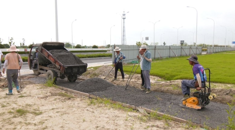 7月26日上午,在鎮(zhèn)海路南延綠化工程城區(qū)段,施工人員正在進行園路路基平整、壓實以及基層透水混凝土澆筑。截至目前,香樟、櫸樹、櫻花等喬木栽植已完成30%以上,城市驛站主體結構施工已經(jīng)完成。城區(qū)段綠化工程北起334省道,南至前湯河,長約1.3公里,按城市綠化標準建設,苗木品種豐富,做到四季景觀鮮明有特色,造型別致有格調(diào)。綠地內(nèi)將新建一條寬約3米,長約3.4公里的慢行步道以及長約2.2公里的濱水步道,并配套建設公廁、停車場、景觀雕塑以及五人制足球場、籃球場、健身廣場、乒乓球場等設施。“我們將搶抓工期進行園路、城市驛站、景觀廊架的施工,待氣溫合適時,展開大規(guī)模喬灌木栽植,全力提升城市南大門形象。”泰興市交通產(chǎn)業(yè)集團項目管理公司項目負責人何康說。