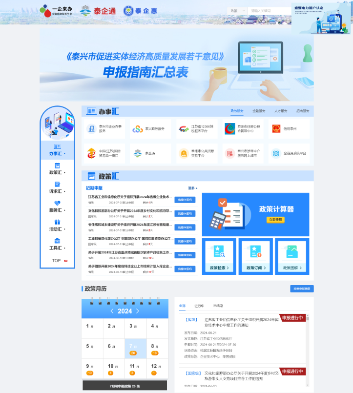 惠企政策“找得到”,一網通曉 今年以來,泰興市持續優化“泰企惠”企業服務平臺功能,集中整合了泰興市級涉企政務服務事項,形成了涵蓋企業辦事服務、金融、人才、招商等多方面的惠企政策庫。企業可根據自身需求,通過類型、級別、條線、申報日期等條件篩選,快速找到最適合的政策文件。同時,該平臺通過智能匹配,主動推送與企業情況高度匹配的政策,確保政策信息的及時性和精準性。