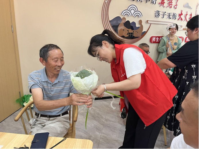 鵲橋架南北,佳期又一年。為弘揚中華民族敬老、愛老、助老的傳統(tǒng)美德,虹德社區(qū)聯(lián)合工青婦力量組織黨員者愿者舉辦“銀發(fā)相守 愛在七夕”主題活動,特邀請15對60歲以上老年夫妻歡聚一堂,共同慶祝這最浪漫的傳統(tǒng)節(jié)日。 走進虹德社區(qū)一老一小關(guān)愛服務中心的老年活動室,現(xiàn)場溫馨融洽、笑語不斷,巾幗志愿者將準備好的西蘭花、彩帶、剪刀等材料分發(fā)給大家,從材料剪裁以及造型搭配方面?zhèn)魇诎b技巧。“我們這次特意選用西蘭花來包裝成花束,讓轄區(qū)老人體會煙火人間的平凡浪漫,讓愛意在柴米油鹽中永存,讓奶奶的碎碎念念陪伴爺爺?shù)臍q歲年年。”志愿者小金說。 鮮花為媒,綠葉為信。在完成了西蘭花花束后,每對夫婦來到打卡處拍下幸福合影,爺爺將鮮花送給老伴,表達自己最深情的愛與祝福。“結(jié)婚這么多年,還從來沒收過花,特別感謝你們的用心,讓我們感受到從未有過的浪漫!”“從來沒想過,這輩子還會趕一次‘時髦’,過了一次難忘的七夕節(jié)……”此次活動贏得了轄區(qū)老人的一致好評。 陪伴是最長情的告白,相守是最真實的幸福。浪漫不只是年輕人的事,本次活動不僅展示了他們風風雨雨幾十年相濡以沫、攜手相伴的人生風采,同時也營造出虹德社區(qū)關(guān)愛老人、夫妻恩愛、家庭和睦的良好氛圍。 |