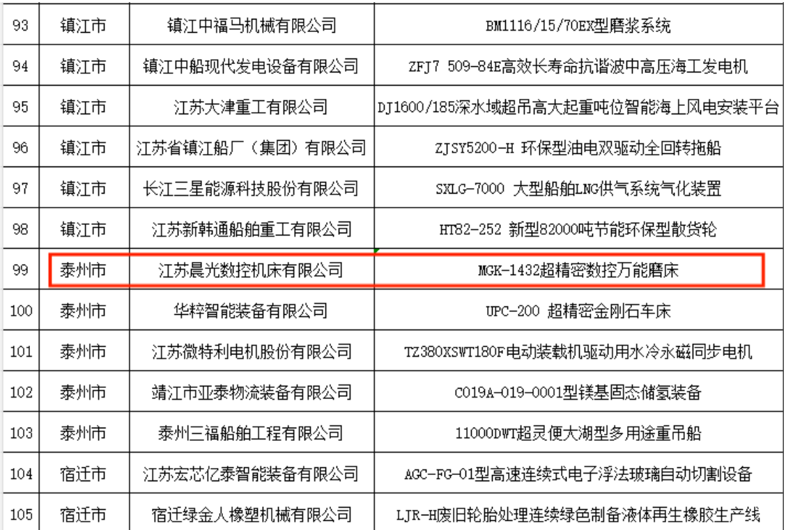 近日,江蘇省工業(yè)和信息化廳發(fā)布了《關(guān)于2024年江蘇省首臺(tái)(套)重大裝備名單的公示》。江蘇晨光數(shù)控機(jī)床有限公司成功入選。截至目前,泰興市共有28個(gè)產(chǎn)品被認(rèn)定為江蘇省首臺(tái)(套)重大裝備,連續(xù)12年保持增長(zhǎng)態(tài)勢(shì)。