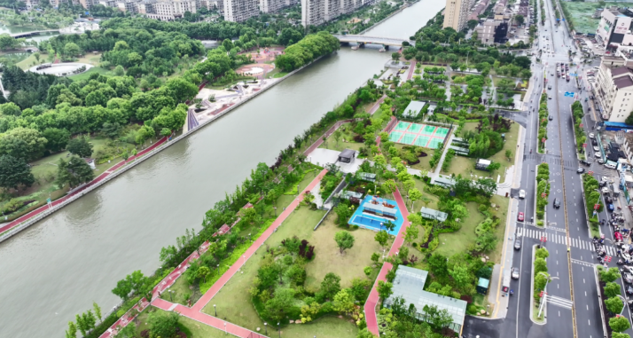 在“雙水潤城”觀景平臺,河水清澈、綠意盎然、生機勃勃。工程在建設階段就嚴格環保標準,從運營階段的持續水質監測與生態保護,到增加產清控制系統,無一不是精心謀劃。項目充分利用運河資源,打造了一系列親水空間,在方便市民休閑娛樂的同時,促進人與自然和諧共生。