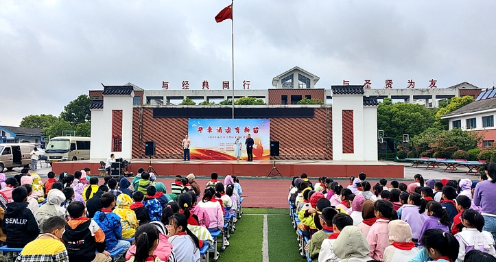 “明月幾時有,把酒問青天。不知天上宮闕,今夕是何年……”日前,在泰興市新街小學的操場上,一場以“華章誦讀育新苗”為主題的經典詩文誦讀活動吸引了眾多師生的目光。學生們全情投入,沉浸在古詩詞《望月懷遠》《水調歌頭·明月幾時有》以及現代詩詞《千年銀杏萬年月》、現代舞臺詩詞劇《英雄》等作品的誦讀之中,享受了一場穿越時空的文化之旅,深刻感受到了濃厚的家國情懷。