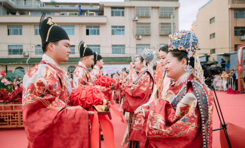 泰興市還注重優化宴席辦理服務,打造村民集中辦事場所,為群眾集中操辦、規范操辦紅白喜事提供便利。今年,泰興市還舉行了以“泰”想遇見你為主題的中式集體婚禮,9對新人在傳統婚禮典禮中完成了他們的婚姻大事,這不僅讓新人們體驗到了中國傳統婚禮的深厚文化底蘊,也踐行了文明婚俗新禮儀。