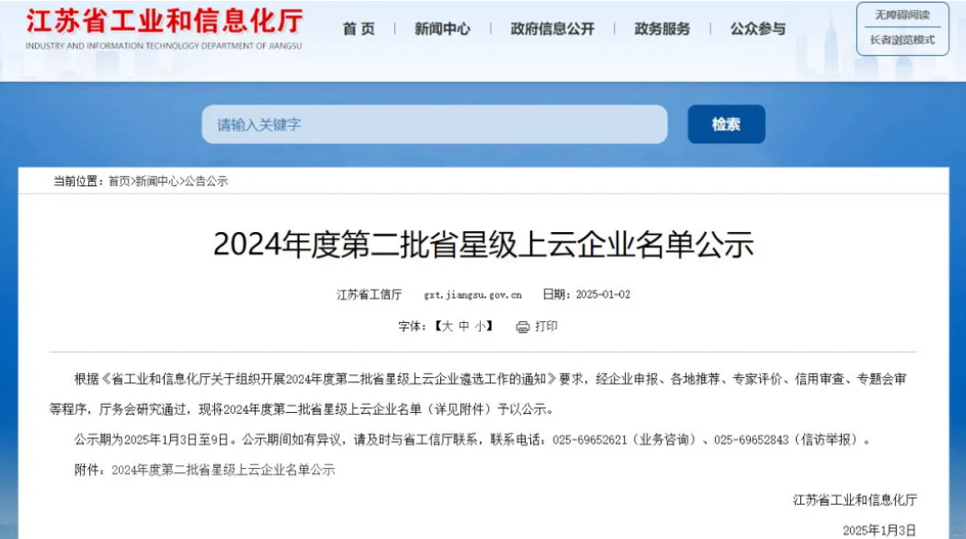 近日,江蘇省工信廳公示了2024年度第二批省星級上云企業名單,包括三星、四星、五星在內,泰興高新區共17家企業入選,其中3家企業獲評五星級。